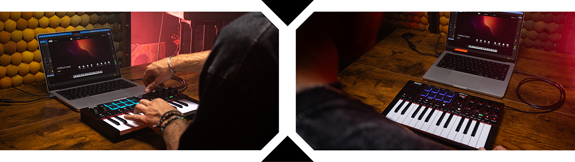 MPK Mini IV, yalnızca bir MIDI kontrolcüsü değil, aynı zamanda tam donanımlı bir prodüksiyon merkezidir. Ürünle birlikte gelen Studio Instrument Collection, Mac ve PC için VST/AU eklentisi veya bağımsız uygulama olarak kullanılabilir. AIR, Akai ve Moog iş birliğiyle hazırlanan bu koleksiyonda; davul, bas, synth, piyano ve efekt kategorilerinde 1.000’den fazla stüdyo kalitesinde ses bulunur. Bu sesler MPK Mini IV ile tamamen entegre çalışarak, kutudan çıkar çıkmaz profesyonel sonuçlar almanızı sağlar. Ayrıca, Ableton Live, Logic Pro, FL Studio gibi popüler müzik yazılımlarıyla önceden programlanmış 1’e 1 kontrol eşleşmesi sayesinde, cihazınızı bağladığınız anda tüm parametrelere doğrudan erişim sağlayabilirsiniz. Yeni tam renkli ekran, çift yönlü geri bildirim sunarak hem navigasyonu kolaylaştırır hem de yaratıcı sürecinizi hızlandırır.