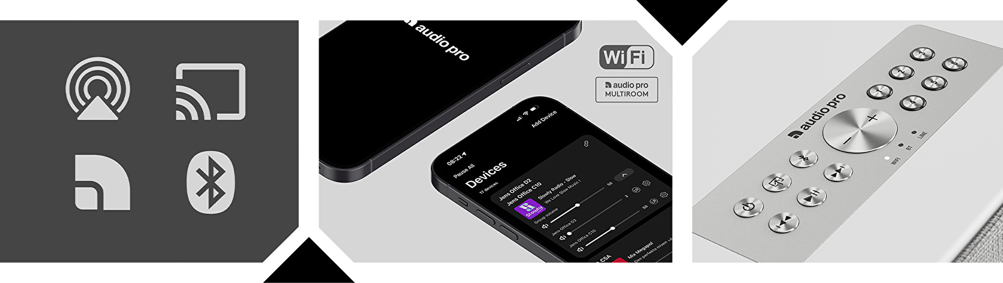 C5 MkII W, Linkplay’in en güncel teknolojisini kullanan yeni Audio Pro uygulaması ile birlikte gelir. Bu sistem; EQ ayarları, Wi-Fi senkronizasyonu ve en popüler müzik servislerine erişim gibi özellikleri tek bir arayüzde sunar. Tüm yazılım güncellemeleri otomatik olarak OTA (Over-the-Air) yöntemiyle yapılır — böylece hoparlörünüz her zaman en güncel sürümde kalır. Yeni arayüzü sayesinde ses ayarlarını yapmak, müzik kaynakları arasında geçiş yapmak artık çok daha kolay.