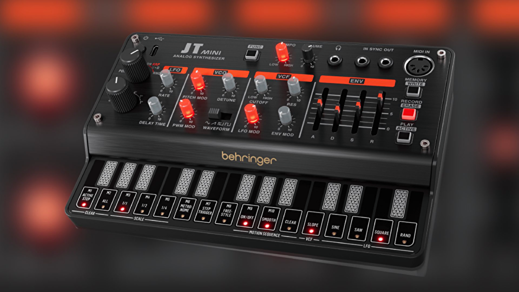 Behringer JT MINI, efsanevi bir synthesizer gücünü her yere taşımanı sağlar! Bu son derece kompakt ve taşınabilir synthesizer, değişken dalga formlu VCO, pulse genişliği modülasyonu ve 16 adımlı motion sequencer özellikleriyle donatılmıştır. Öyle küçük ki bir sırt çantasına veya gigbag’e rahatlıkla sığar.