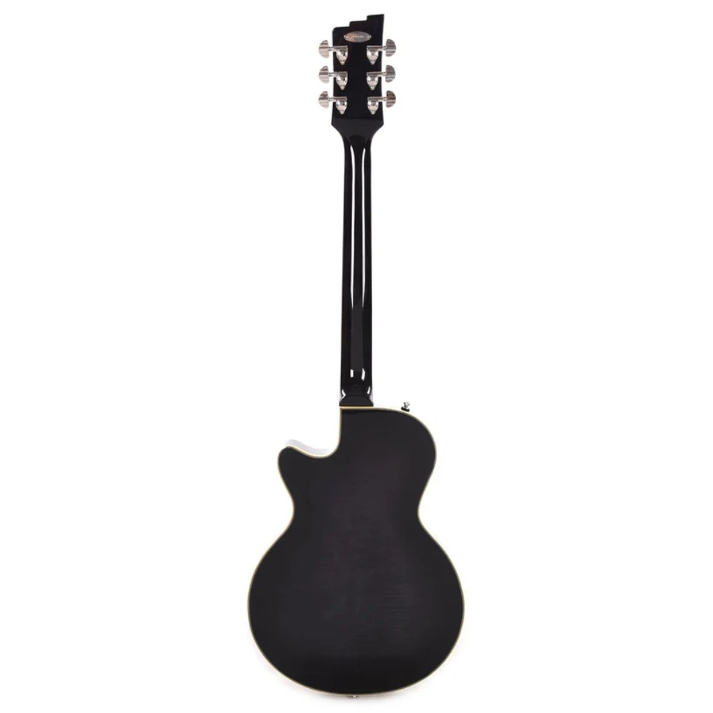 arif parlak siyah headstock, Duesenberg’in son derece akıcı Z-Tuners burgularını taşır. Bu burgular yalnızca olağanüstü hassasiyetleri ve konforlu kullanımıyla değil, aynı zamanda tellerin keskin uçlarını milin içine gizleyebilme özelliğiyle de öne çıkar. Bu sayede kılıfınıza, çantanıza ya da parmaklarınıza zarar vermezler. Tamamen bakım gerektirmeyen uzun ömürlü bir kullanım sunarlar.