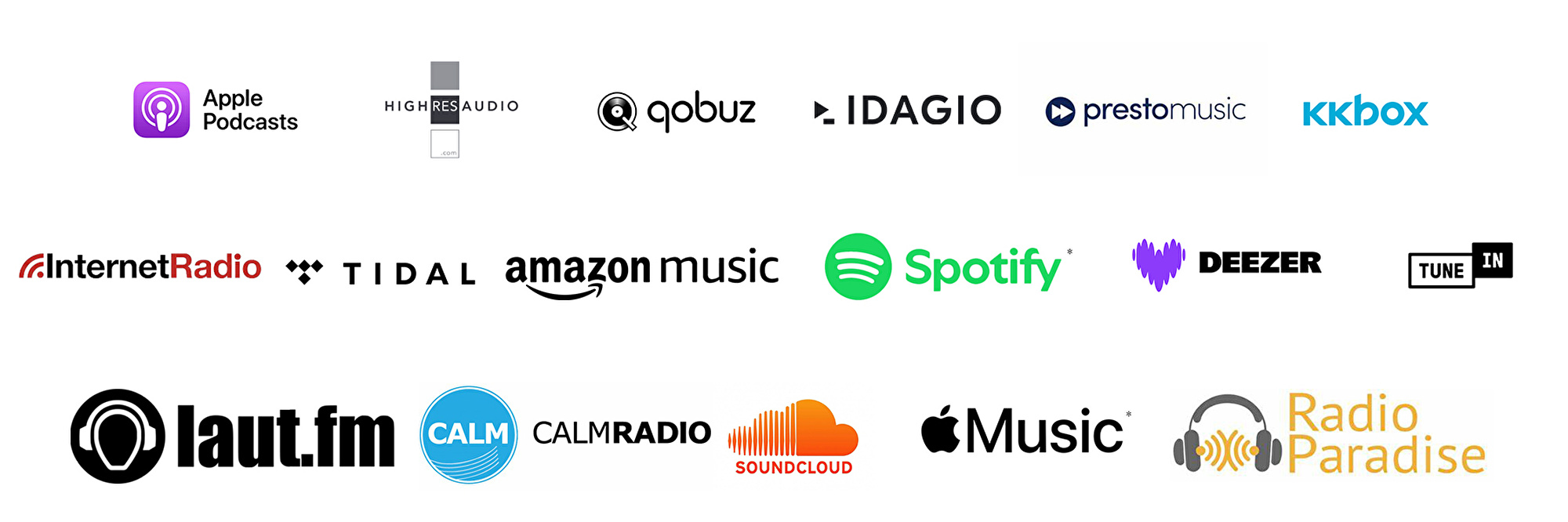 Roon Ready, TIDAL Connect, DLNA, Qobuz Connect |