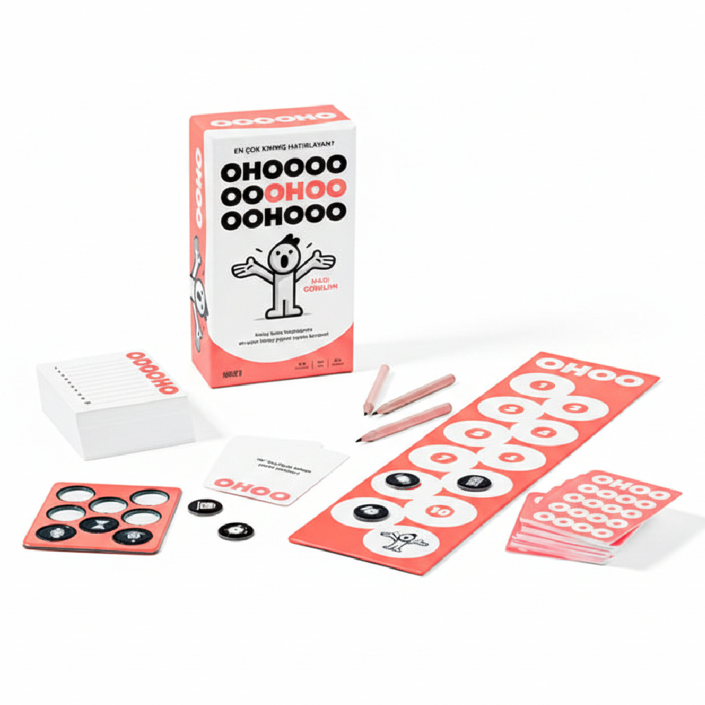 Yaratıcı düşünceyi ve hızlı karar verme yetisini destekleyen OHOO!, oyuncuları kısıtlı sürede maksimum üretim yapmaya odaklayan bir masaüstü kutu oyunudur. İyikafa imzası taşıyan tasarımıyla, hem görsel hem de içerik kalitesiyle öne çıkar.