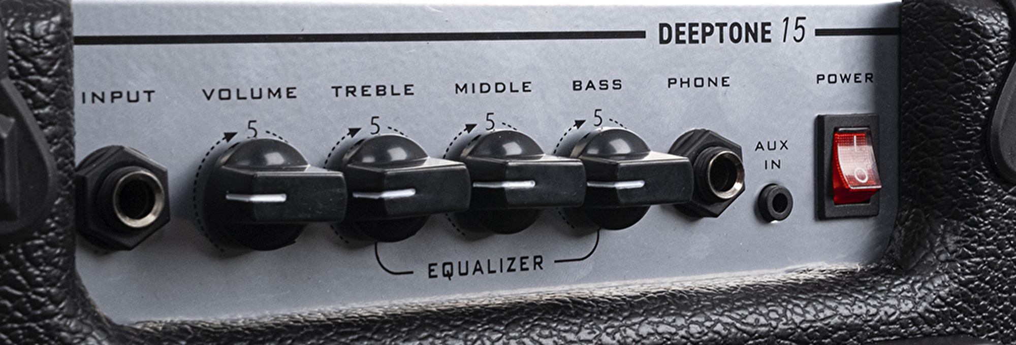 DeepTone serisinin üst panelinde yer alan kontrol merkezi, her seviyeden bas gitaristin ihtiyaç duyduğu ayarlara en hızlı ve pratik şekilde ulaşabilmesi için özenle tasarlanmıştır. Treble (tiz), Middle (orta) ve Bass (bas) potansiyometrelerinden oluşan hassas EQ sistemi sayesinde tonunuzu kristal netliğindeki tizlerden göğüs kafesini titreten güçlü baslara kadar geniş bir aralıkta özelleştirebilirsiniz. Standart enstrüman girişi (Input) ile birlikte, sessiz çalışmalar için Phone (kulaklık) çıkışı ve harici cihazlardan müzik aktarımı yapabilmenizi sağlayan Aux In girişi yan yana konumlandırılarak geniş bağlantı seçenekleri sunulmuştur. Metalik fırçalanmış panel üzerinde yer alan siyah kontrol düğmeleri hem kolay okunur hem de akıcı bir kullanım hissi sağlarken, kırmızı ışıklı Power anahtarı cihazın durumunu tek bakışta kontrol etmenize olanak tanır.