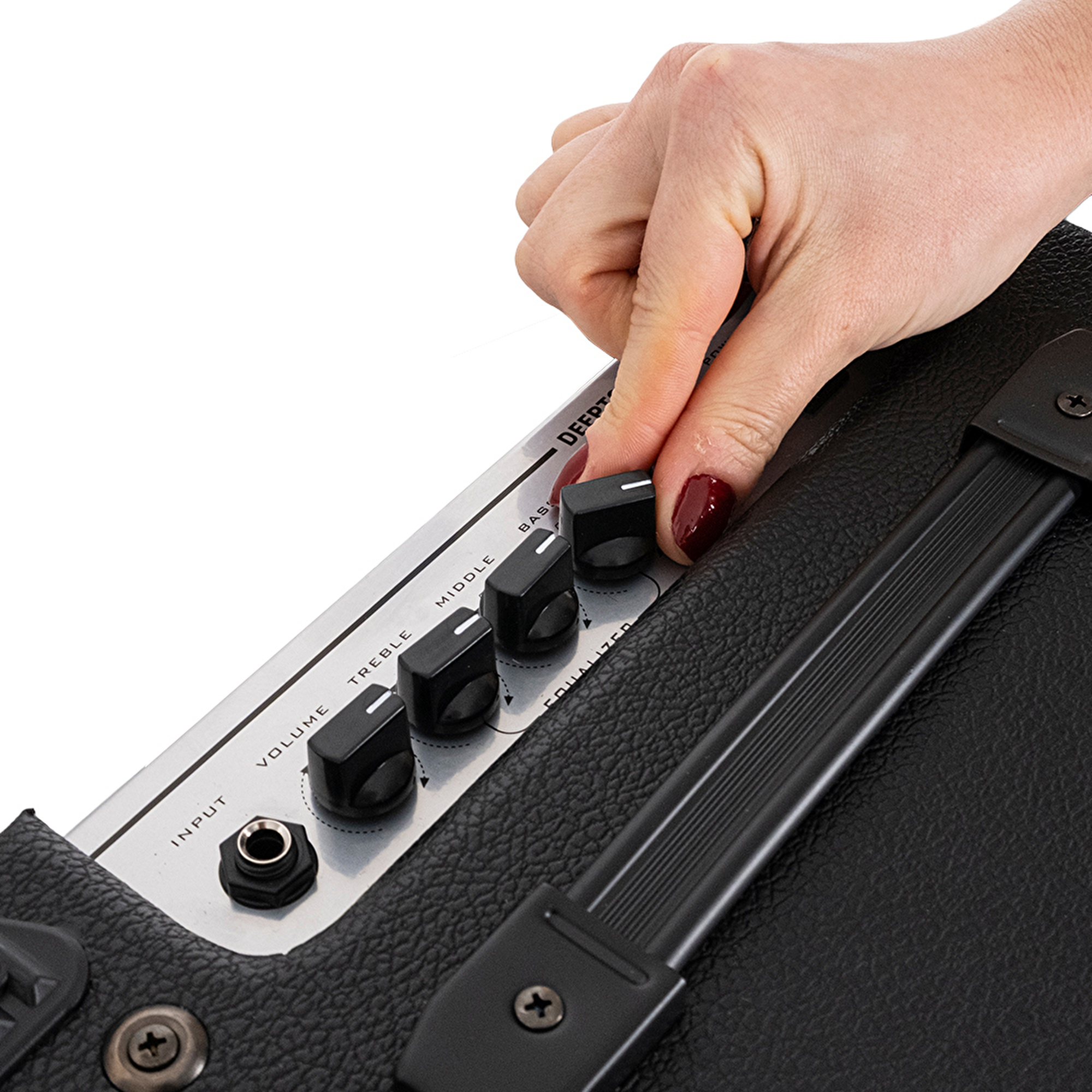 DeepTone serisi, sunduğu 3 bantlı (Treble, Middle, Bass) ekolayzır ile tonunuzu tamamen kontrol etmenize olanak tanır. “Phone” çıkışı sayesinde gece geç saatlerde bile kimseyi rahatsız etmeden sessizce pratik yapabilir, en güçlü bas yürüyüşlerinizi özgürce çalışabilirsiniz. “Aux In” girişi ile telefonunuzu ya da bilgisayarınızı bağlayarak sevdiğiniz şarkıların üzerine eşlik etme keyfini yaşayabilirsiniz. Sağlam yapısına rağmen hafif ve taşınabilir tasarımı sayesinde DeepTone amfinizi dilediğiniz her yere kolayca taşıyabilirsiniz.