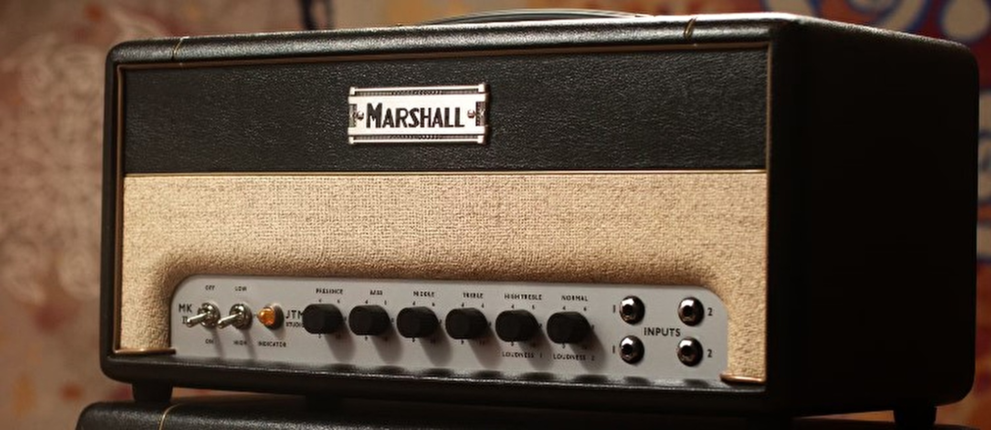 Marshall'ın Bletchley, İngiltere'deki dünya standartlarındaki fabrikasında el yapımı olarak üretilen ST20H Studio JTM, aynı metalden kırmızı emaye dökülmüş "coffin" logosundan, altın biye ve boncuklarla tamamlanmış açık kahverengi perdesine kadar döneme uygun estetikle süslenmiştir - Studio JTM, 60'lı yıllara güzel bir selam göndermektedir.