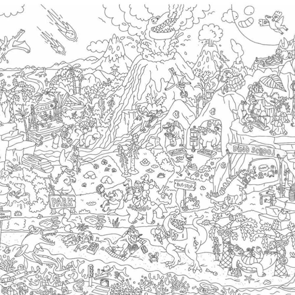 Dinozorlar çağını boyayarak keşfedin! T-Rex, Triceratops, Stegosaurus ve daha birçok sevimli dinozorun yer aldığı bu dev boyama posteri, çocuklar ve dinozor meraklıları için hem eğlenceli hem de öğretici bir deneyim sunar. OMY’nin detaylı ve mizah dolu çizimleri sayesinde tarih öncesi dünya renklere bürünüyor.