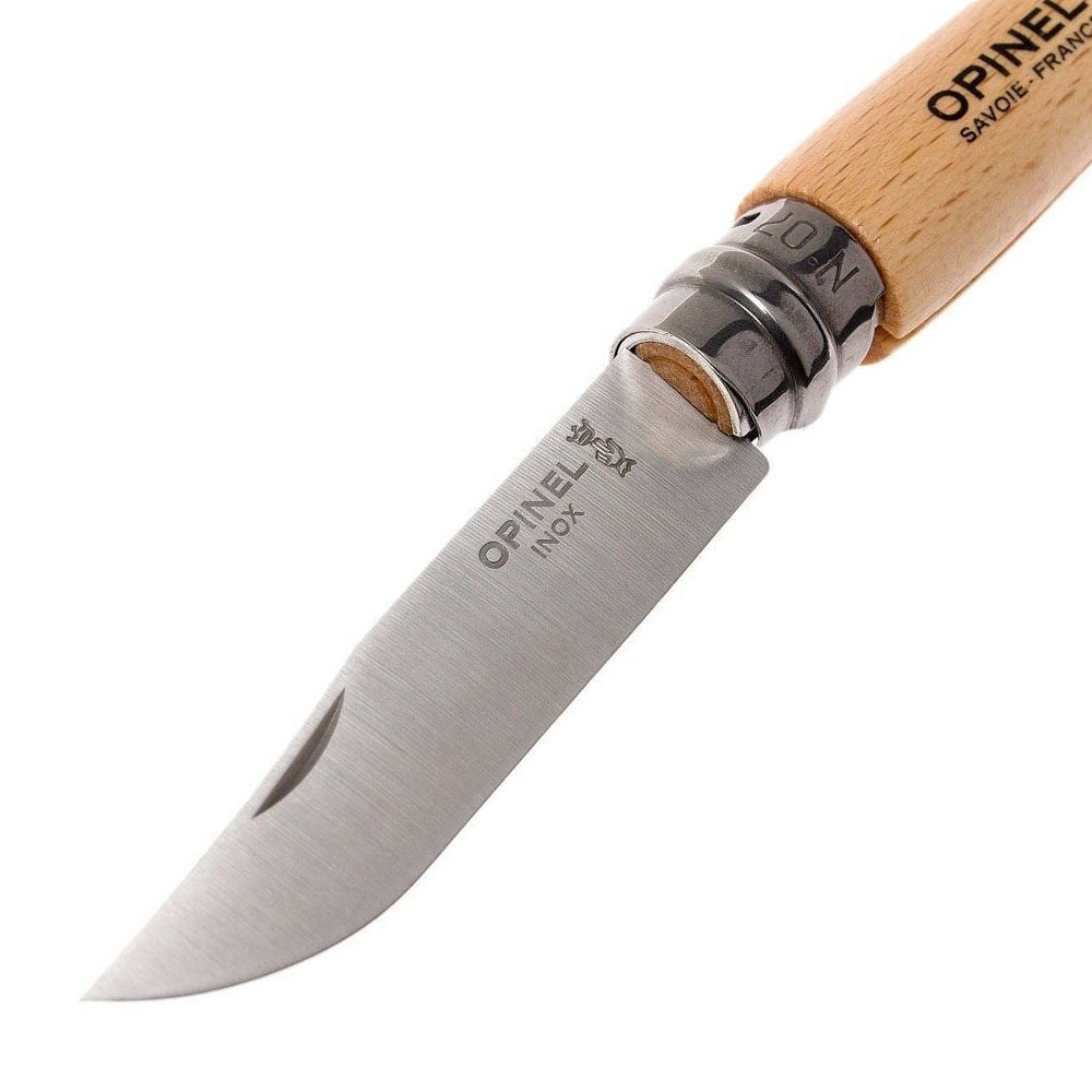 Opinel No. 7, Sandvic 12C27 paslanmaz çelik bir bıçağa sahiptir. Özel bir ısıl işlemi, bıçak sertliğini 57-58 HRC seviyesine çıkarır. Çelikten yapılmış bir bıçak günlük kullanım için uygundur.