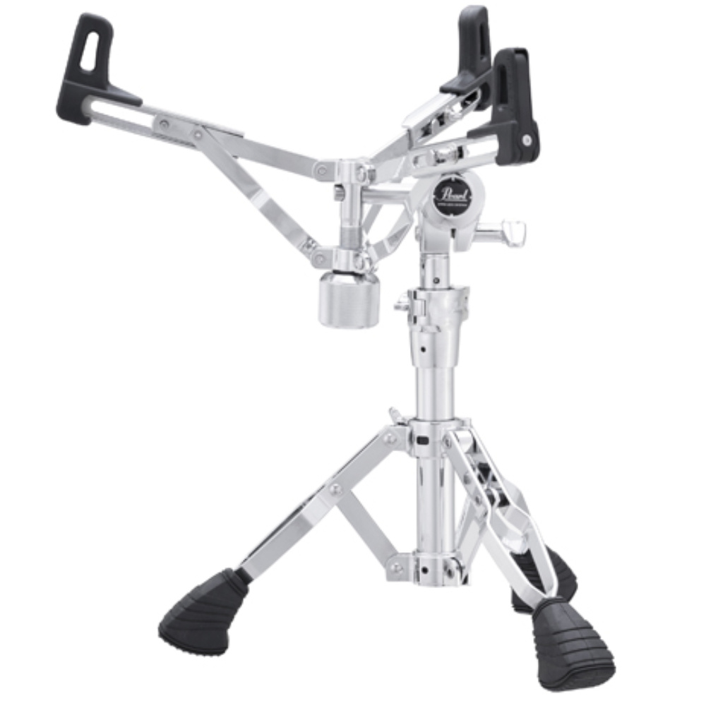 Pearl’ün premium, turne sınıfı donanım serisinde yer alan S-1030 Düşük Profil Trampet Sehpası, daha derin trampetler ve tomlar için tasarlanmış, tamamen ayarlanabilir alçaltılmış sepet yapısına sahiptir ve 10”–16” çap aralığındaki davulları destekler. GyroLock eğim mekanizması, sepetin neredeyse her açıya hassas şekilde konumlandırılmasına olanak tanırken, Pearl’ün patentli Air Suspension Rubber Tips kauçuk uçları davulu boğmadan, güvenli bir tutuşla doğal rezonansını korur. Döküm, izoleli boru bağlantısı ise kaymasız yükseklik ayarı ve titreşimsiz performans sunar. Daha alçak çalma pozisyonları, derin kasa modelleri ve bando trampetleri için idealdir.
