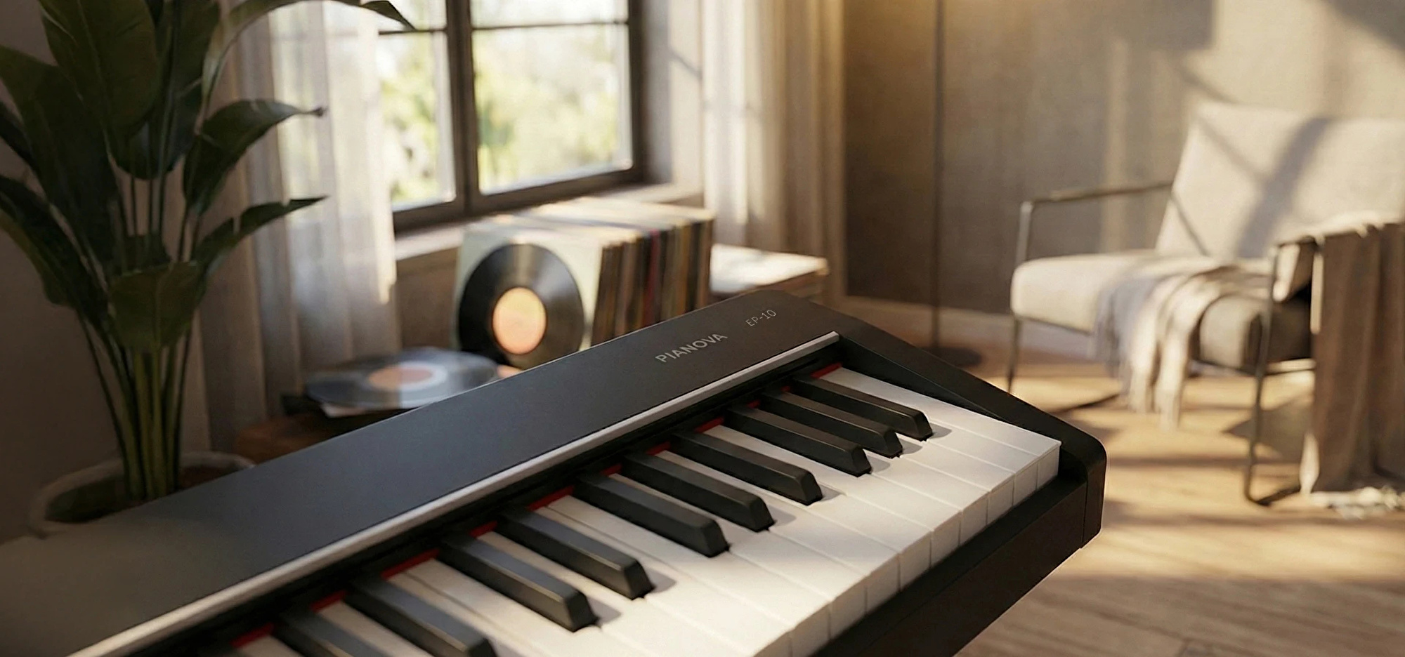 Pianova EP-10, taşınabilir gövde yapısıyla imobil kullanım özgürlüğü sunarken, ayak ve üç pedallı setiyle kurulduğunda klasik konsol piyano estetiği sağlayan çok yönlü bir dijital piyano çözümüdür. Başlangıç ve hobi kullanıcıları için tasarlanan EP-10, profesyonel piyano standartlarını hedefleyen teknik donanımıyla öne çıkar.