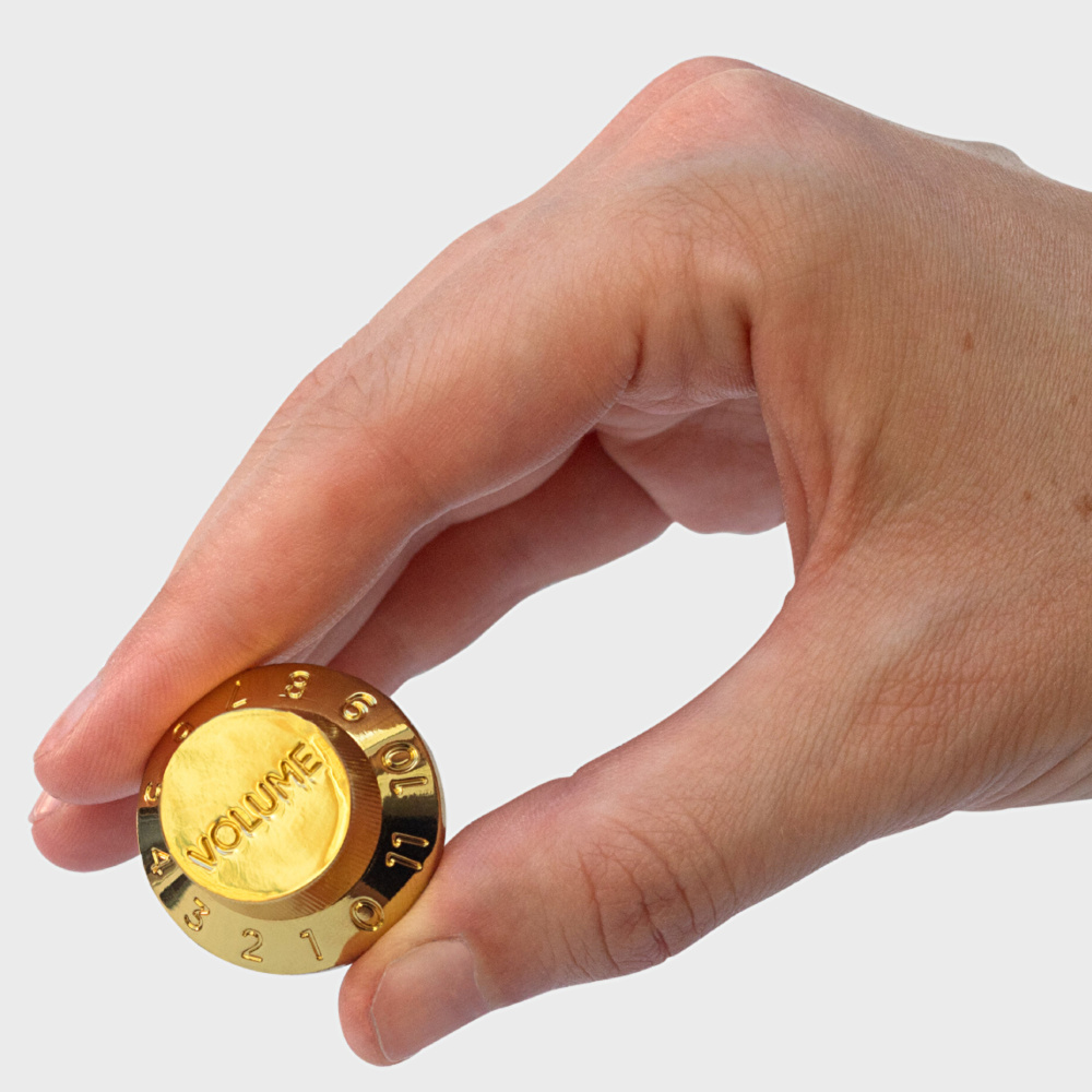 İlişkinizin sesini sonuna kadar açmaya hazır mısınız? "Turn Me On", klasik elektro gitar ses düğmesi (knob) şeklinde tasarlanmış, altın kaplama şık bir şans tılsımı ve cep aksesuarıdır. Klasik rock ikonografisine bir gönderme yapan bu ürün, ses seviyesini "11"e kadar gösteren detayıyla Spinal Tap hayranlarına da göz kırpar. Sevgilinize veya çok sevdiğiniz bir arkadaşınıza "Beni heyecanlandırıyorsun" (You turn me on) mesajını vermenin en havalı ve esprili yoludur.