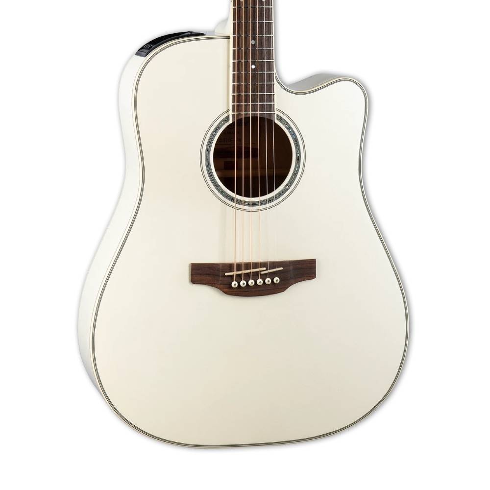 Takamine’in yüksek fiyat/performanslı G Serisinde yer alan bu ipeksi tonlu gitarın temelini akçaağaç arka ve yanlar oluşturur. Zarif parlak inci beyazı cila ile tamamlanan bu dreadnought gitar; gövde, klavye ve kafa kısmında ivory (ivoroid) binding detaylarına sahiptir. Altın donanım, inci nokta pozisyon işaretleri ve göz alıcı abalone rozet, bu gitarın zarafetini ve çarpıcı sadeliğini ön plana çıkarır.Kullanılan ağaçlar sayesinde gitar; parlak, güçlü, tok ve net bir tona sahiptir ve çok geniş bir müzik tarzı yelpazesinde son derece başarılı bir performans sunar – %100 Takamine karakteri. Canlı performansları son derece kolay ve keyifli hale getiren efsanevi TP-3G elektronik sistemi ile donatılmıştır. Gitar, uzun yıllar boyunca ilk günkü şıklığını koruyabilmeniz için sağlam ve kullanışlı bir gigbag ile birlikte gönderilir.